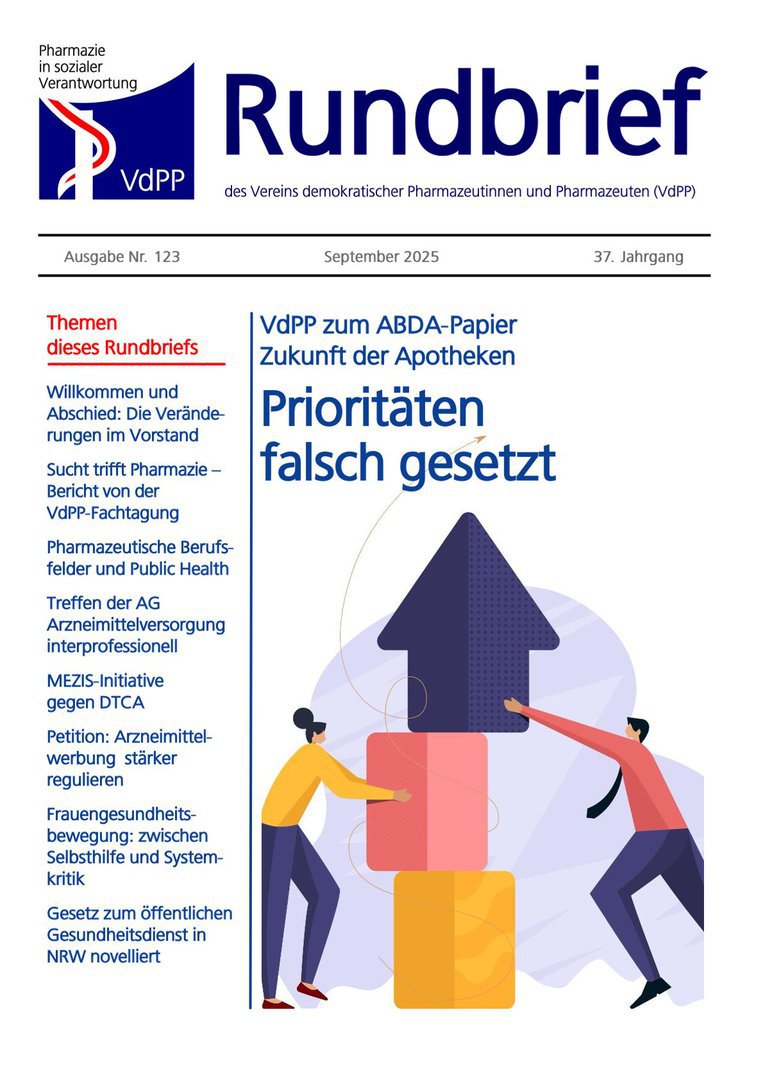 Im Rundbrief des VdPP werden Stellungnahmen, Kommentare und Dokumentationen aktueller Arzneimittel- und Gesundheitspolitik veröffentlicht sowie Berichte über VdPP-Veranstaltungen abgedruckt.